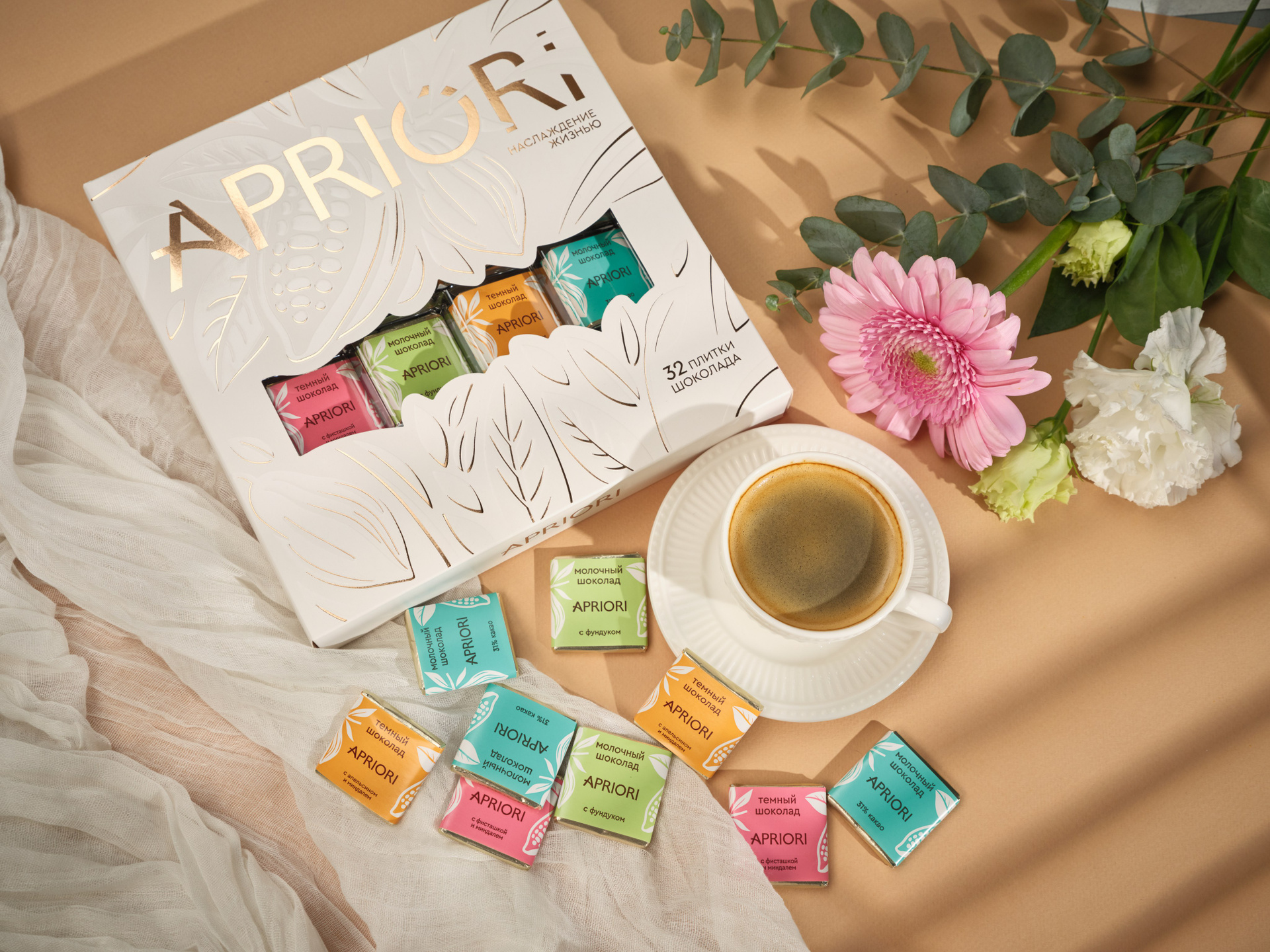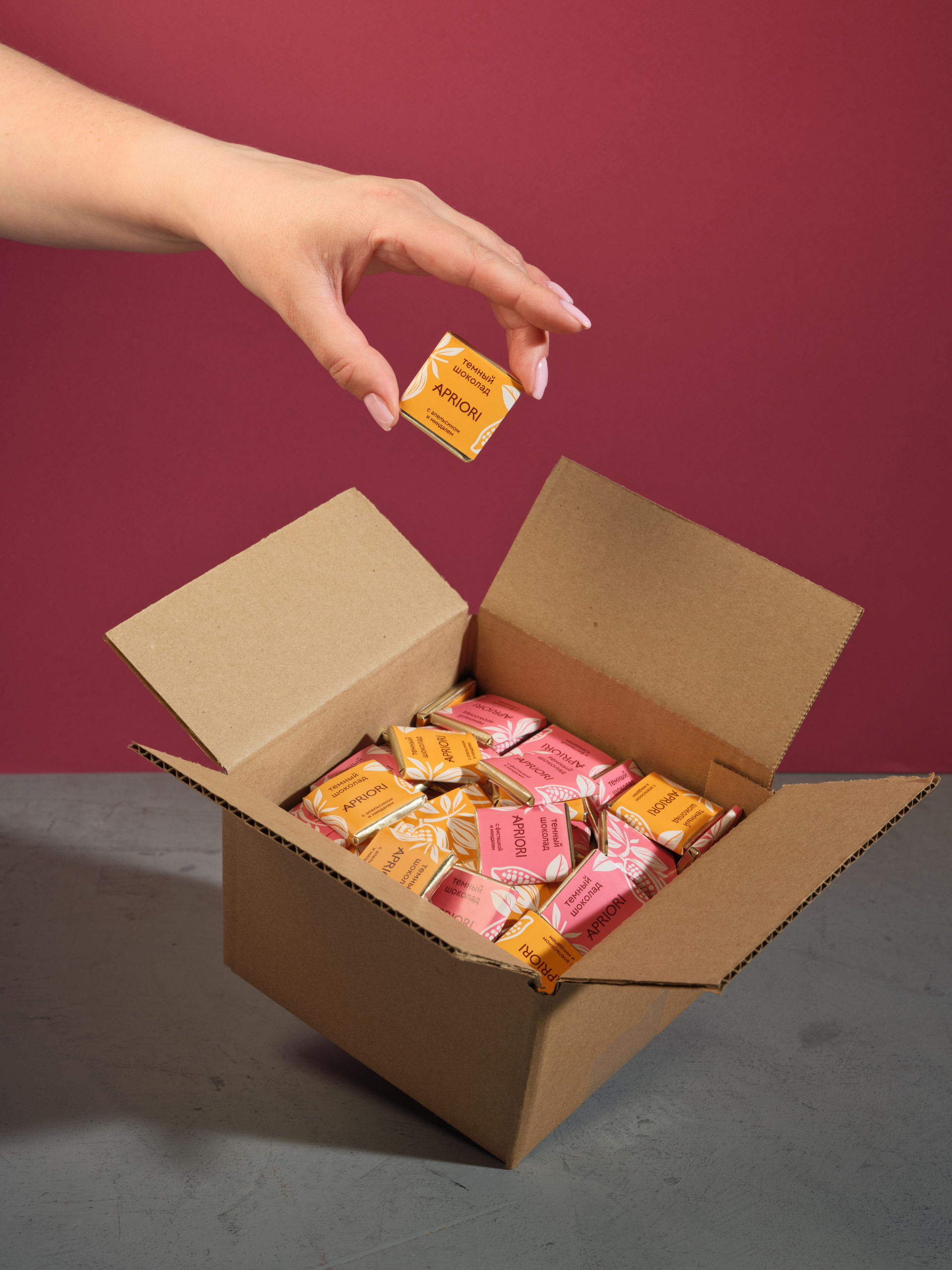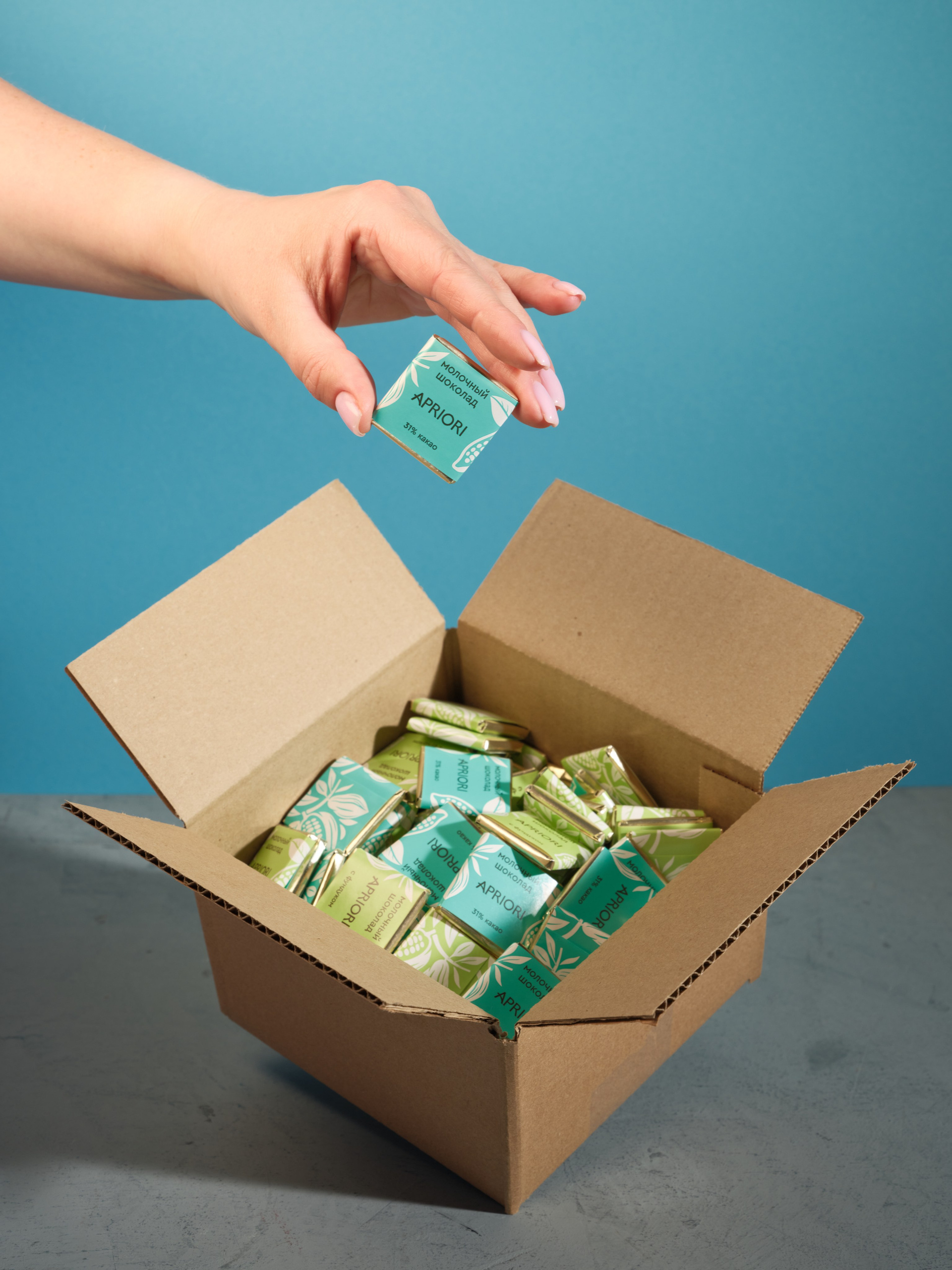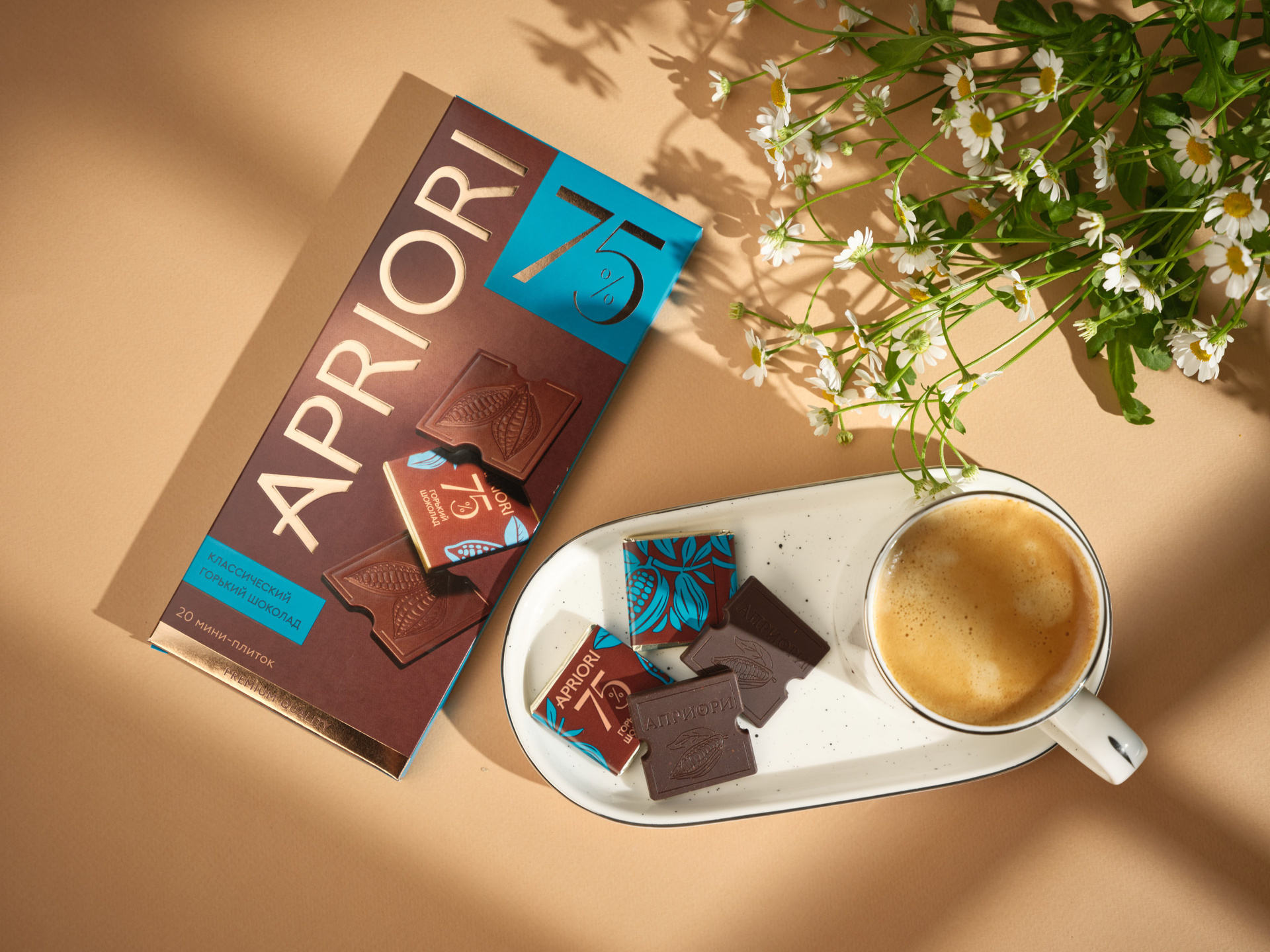 Рекламное фото плитки шоколада для фабрики Априори